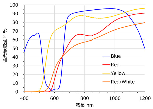 Fig. 3-7 各種色調のナノ顔料配合塗膜の分光透過率