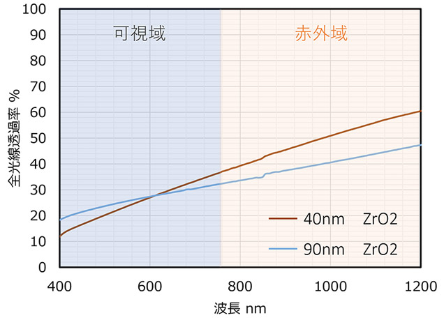 可視光平均透過率は、上記分光透過率測定結果から波長400~780 nmの可視光領域における透過率を算術平均して求めた。近赤外光平均透過率は、波長780~1,500 nmの近赤外光領域における透過率を算術平均して求めた。