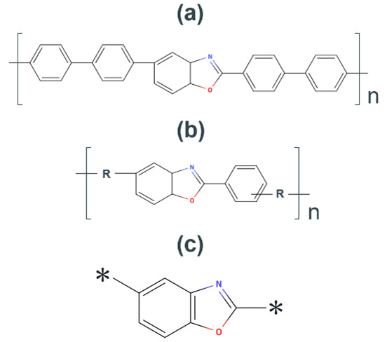 Fig. 16 Molecular structure of(a) PBO,(b) PBO polymerized by π-stack and(c) BO skeleton.