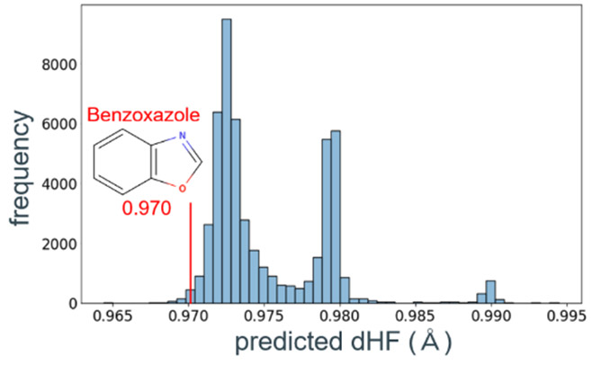 Fig. 17 Histogram of predicted dHF of molecular structures with benzoxazole skeleton.