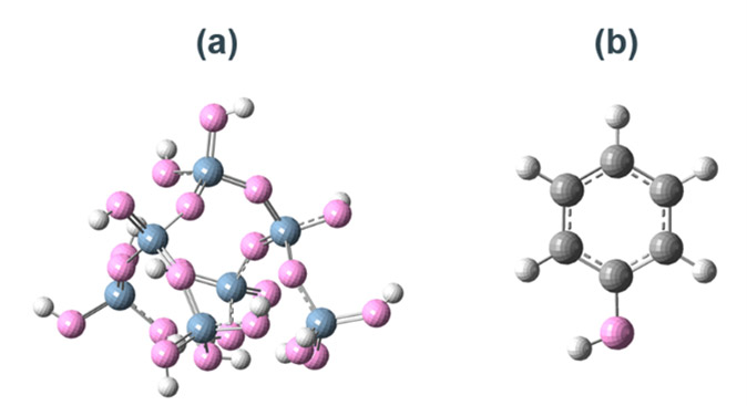 Fig. 2(a) Optimized SiO2 cluster model.(b) Optimizedphenol cluster model.4. 結果