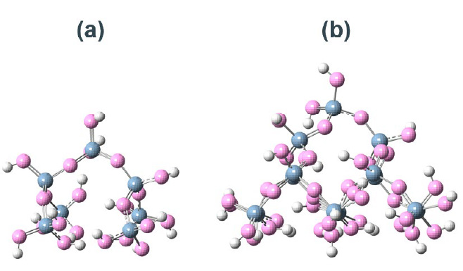 Fig. S3 Different computational models for SiO2 surfaces.(a) Si7O22H15 cluster model.(b) Si17O52H27 cluster model.