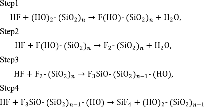 - Hoshino, T. and Nishioka, Y.: Etching Process of SiO2 by HF Molecules, J . Chem . Phys ., 111,(1999): 2109. doi: 10.1063/1.479480.