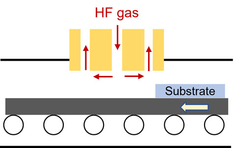 一方、近年フッ化水素ガスを用いたガラスのエッチング手法が報告され、エッチング後の表面はナノメートルレベルのラフネスを持つことが報告されている21。この手法はガラス製造プロセス中の高温場を利用することができるため短時間での微細構造構築が期待できる。