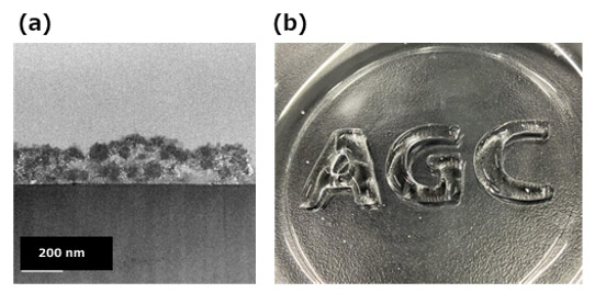 Fig. 11 (a) TEM image of raspberry-shaped silica coating glass cross section. (b) Applying the coating to a curved surface.参考文献