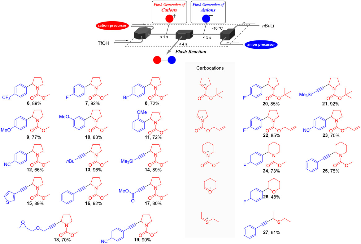 Fig. 6 Generation and Reaction of Carbocation in Flow.