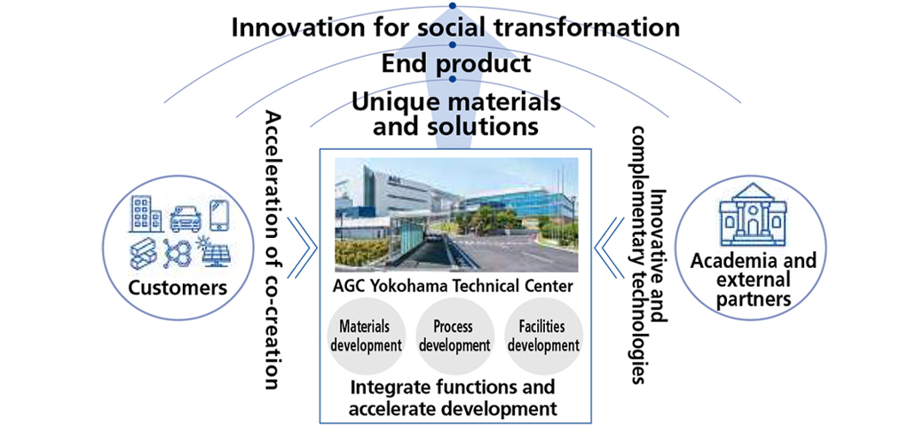 We are also focusing on human capital investment in our R&D division. We are systematically optimizing our human asset portfolio to place talented individuals with a variety of skills in the right roles. In addition, we are investing in the development of middle management to drive teams forward. We must break down organizational silos to harness the collective strength of the AGC Group to compete as a unified force. Toward that end, we also strive to increase the mobility of our talent and to increase opportunities for dialogue. The AGC Yokohama Technical Center, which serves as the hub for technological development, includes core technologies, materials technologies, process technologies, and production technologies in the same site. Furthermore, by bringing together a portion of the development divisions of all in-house companies, barriers between organizations and business divisions have been lowered to accelerate innovation through cross-functional collaboration.