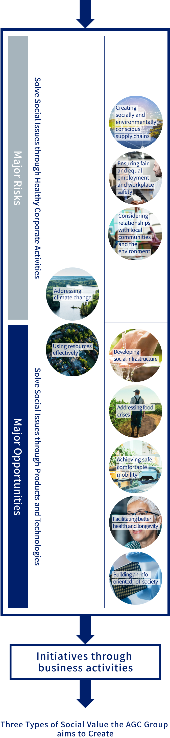 By providing unique materials and solutions, AGC strives to help realize a sustainable society and become an excellent company that grows and evolves continuously.