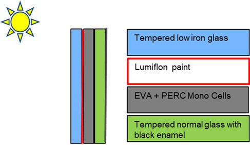 BIPVの意匠性と発電効率を両立するため、ナノサイズ顔料を用いた意匠性塗料を施した太陽電池モジュールを作製し、その効果を検証した。その結果、白色顔料では、ナノサイズ化によって生じる散乱の波長依存性を利用し、可視光および赤外域波長の選択性を発現させることが可能であった。また、有彩色顔料では、ナノサイズ顔料を用いることで光散乱による赤外域透過率の低下を抑制し、可視光域の隠ぺい性と赤外透過性の両立を実現した。さらに、80×80 cm2のモックサンプルを作製して発電効率を実測した結果、想定通りの高い発電効率を確認した。