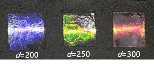 Fig. 3 Appearance of silica-PEG three-dimensional photonic crystal(3DPhC)film with silica diameters d ranging from 200 to 300 nm.