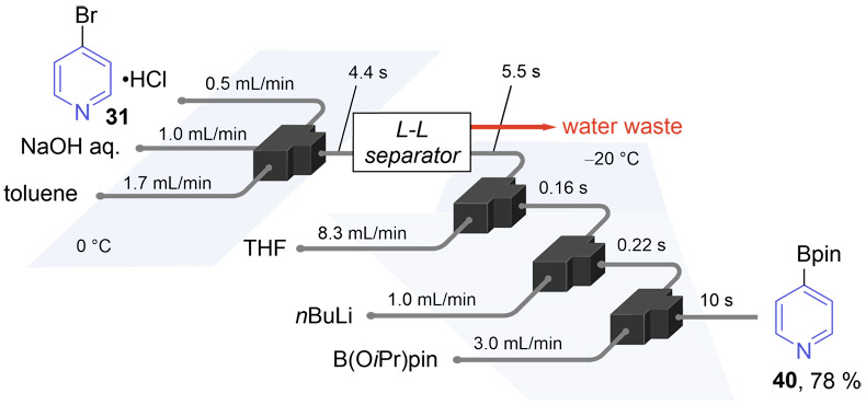 3.2. 脱塩と有機反応のワンフロー反応4-(4,4,5,5-テトラメチ ル-1,3,2-ジオキサボラン-2-イル)ピリジン(40)