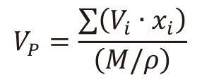 (11)イオン充填率Vpの式中のMは平均分子量[g/mol]であり、xiは組成比[mol%]である。またVi及びGiは各ガラスを構成する酸化物i に対して求まる組成パラメータである。