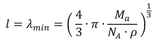 (12)また、室温付近の平均自由行程はフォノンの波長に等しいとする理論に従い、ガラスの平均自由行程を計算できる。ただし、ここでは平均自由行程がフォノンの最短波長λmin[nm]で与えられるとし、(13)式から推算している。