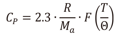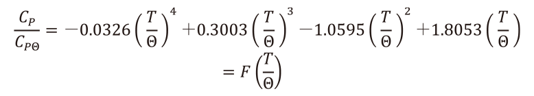 (16)また、規格化した比熱CP/CPΘが十分高温では1.3近傍に漸近することと、ガラスの比熱がデュロンープティの法則に従い3R /Mαに収束することを仮定すれば、デバイ温度における比熱は次式により求めることができる。